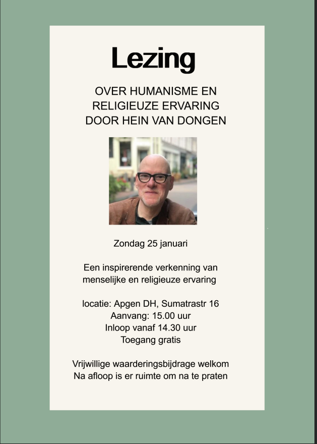 >zo 25-01-26: Lezing over humanisme en religieuze ervaring door Hein van Dongen