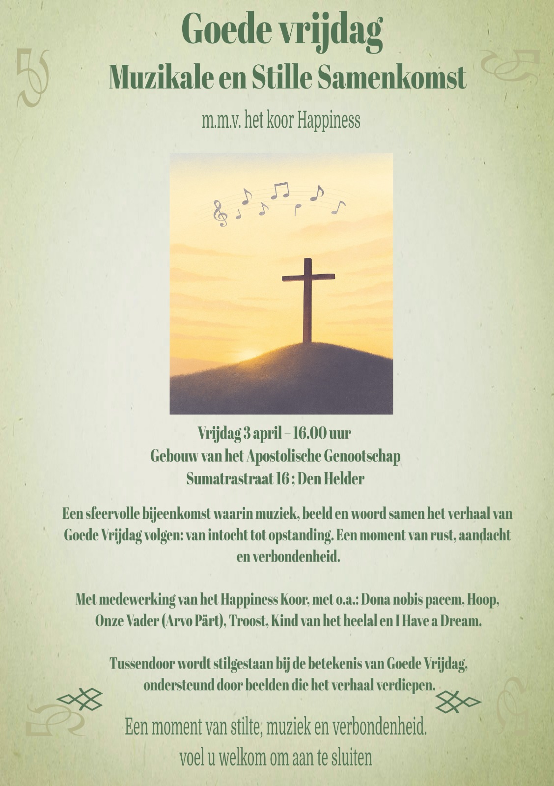 vr 03-04-26 Goede vrijdag samenkomst Aanvang 16.00 uuur m.m.v. koor Happiness