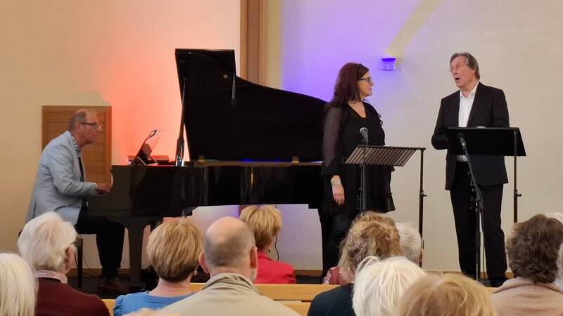 De musici — Hanneke Bergsma en Paul Sanders (zang), Liesbeth Laan en Marianne Hartogsveld (klarinet) en Dick Laan (piano) — brachten daarna een afwisselend programma waarin hun vakmanschap volledig tot zijn recht kwam. Hanneke en Paul zongen samen diverse duetten, waarin hun stemmen prachtig samensmolten.